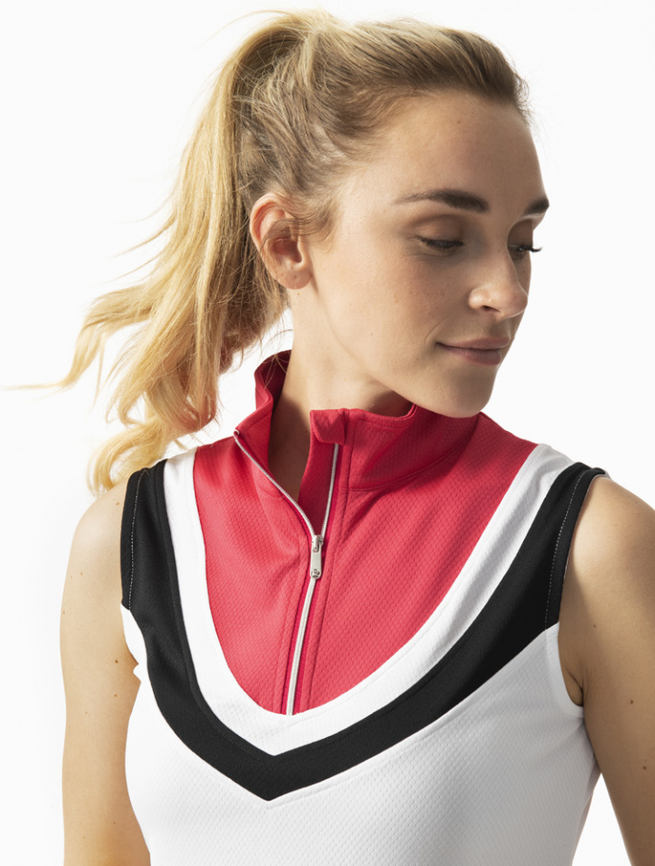 En skön och stretchig ärmlös top med lös passform. Tillverkad i återvunnet material som andas och torkar snabbt. Stå uppkrage.