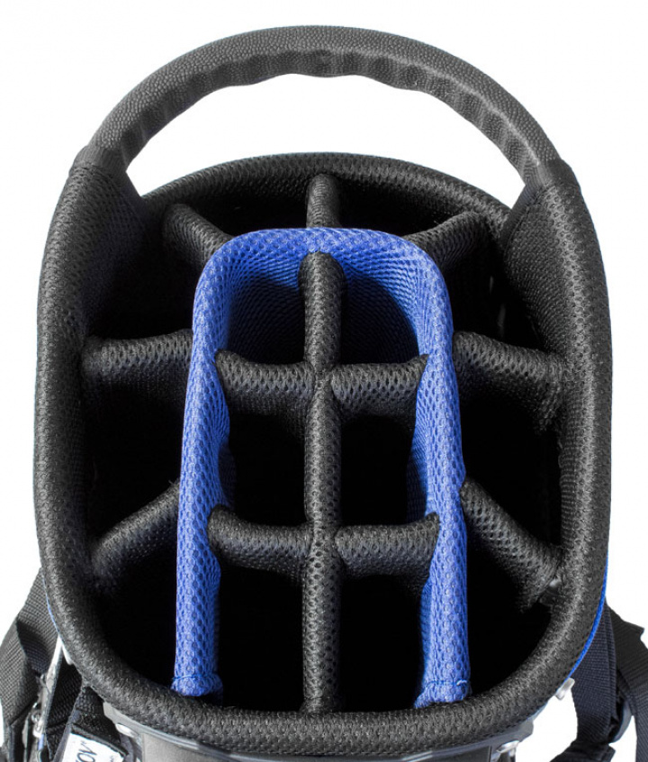 För bättre komfort för golfaren kommer bagen med bärsele som har dämpning. Denna välutrustade bärbag har en 14-delad topp och för optimal förvaring finns många fack och fickor. Vikt 2.6 kilo.