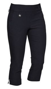 En snygg och stilren superstretchig capribyxa med elastisk midja och utan knäppning.