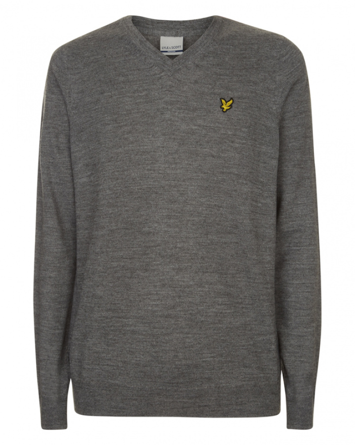 Lyle & Scott Pullover Herr V-Hals Grå Melerad