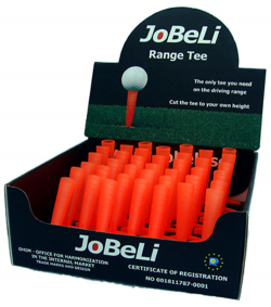 JoBeLi range tee är en flexibel pegg speciellt anpassad för driving range-mattor. Med ett enkelt handgrepp trycker du fast peggen i mattans spår och där sitter den kvar hela träningspasset till skillnad från en vanlig träpegg som antingen flyger i väg eller går av. JoBeLi range tee går alltid tillbaka till utgångsläget och den går lätt att klippa av i den höjd som passar dig bäst.