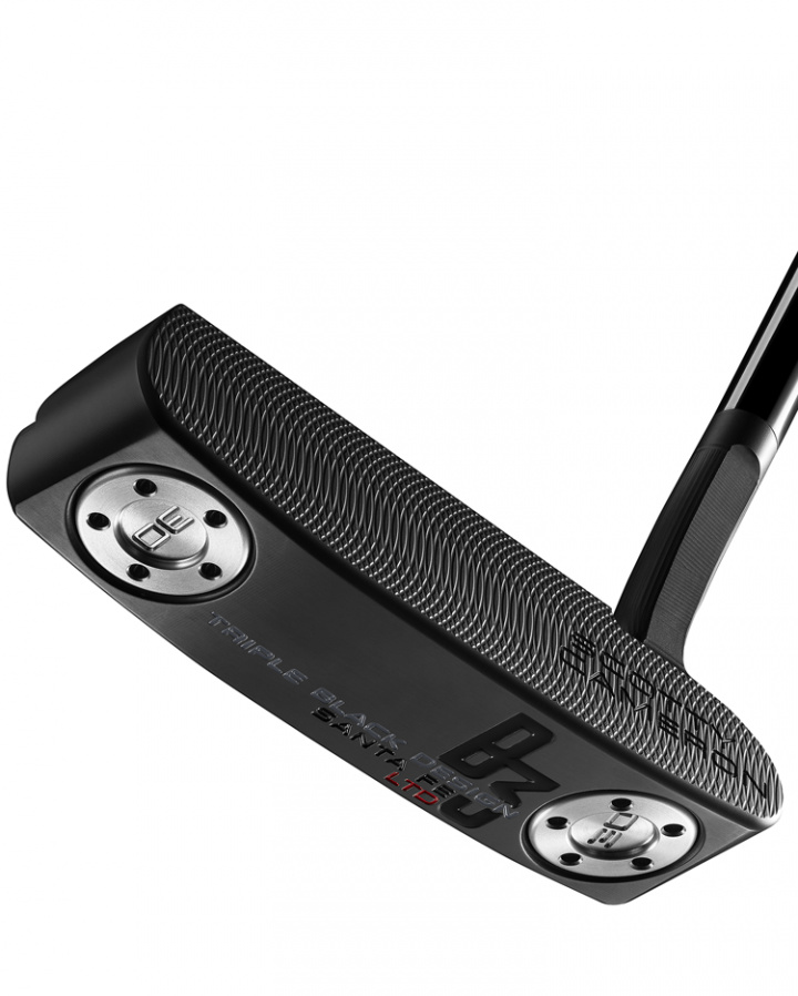 B3 Triple Black Design LTD Santa Fe hyllar en av Scotty Camerons tidiga klassiker, känd för sin kombination av Newport-form och en flare-hals som ger en aning tåflöde i putt-rörelsen. Med mjukare, rundade detaljer och baserad på dagens moderna Super Select Newport-huvudform, tillför denna nya konfiguration en viktig puttermodell med sin ""1,5""-hals som ger en offset på cirka ¾ skaft. Med sin Tour Black-finish, svarta skaft och svarta Pistolini Plus-grepp, inkluderar denna ""triple black""-design varumärkets välbekanta frästa trippla kavitetsprickar, accentuerade med genomskinlig rökfärg, samt anpassningsbara sulvikter, en dubbel-fräst ansiktstextur och utseendet och känslan av dagens moderna bladputters.