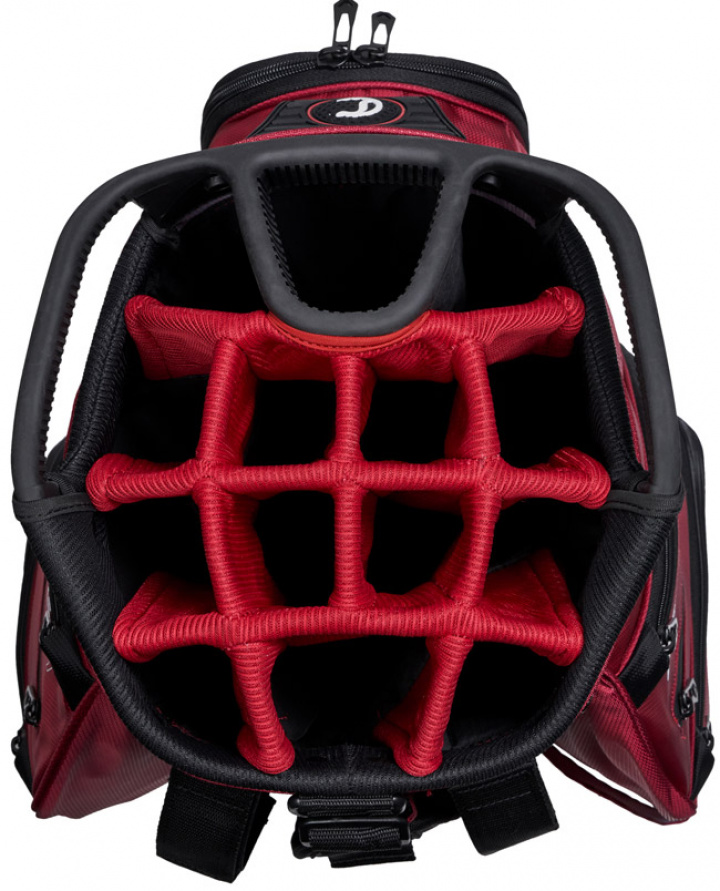 • 14-delad topp som har olika längder för att alla klubborna ska kunna ta emot på bottenplattan. Ett separat putterfack som är förstärkt med hårt gummi för extra skydd