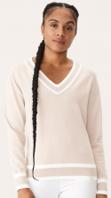 Stickad V-ringad tröja i ekologisk bomull. Muddar i halsen, armarna och nedtill. Normal passform och gör dig stilig såväl på som utanför banan. Tvättas i 30 grader mild tvätt. Använd ej blekmedel. Torktumla ej. Strykning med låg temperatur. Ej kemtvätt. Tvättas med liknade färger Plantorkas Formas i vått tillstånd.