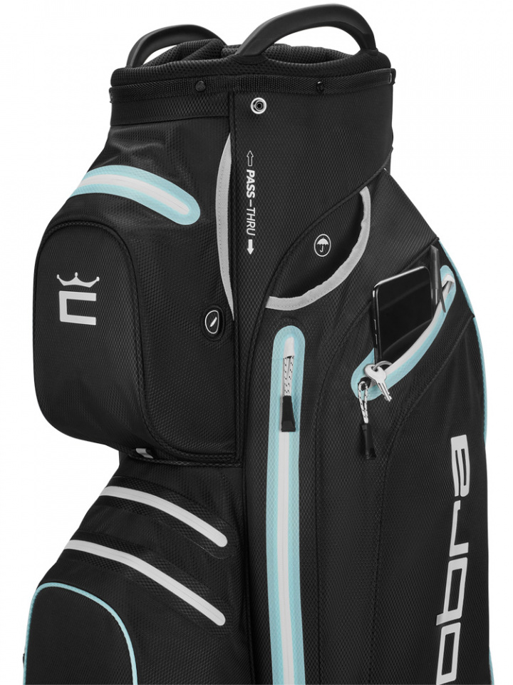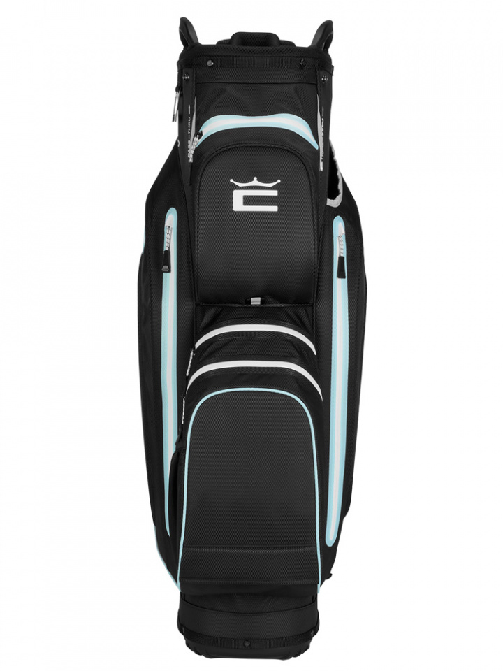 För att kunna säkerställa att dina saker är torra även efter rejält regn är denna vattentäta bag av högsta kvalitet. Med vattentäta blixtlås och tejpade sömmar får du en bag du kan lita på i alla väder. För att enklare hantera är det en lägre vikt och flertalet handtag för att enklare kunna lyfta bagen i och ur bilen. Med två stora fickor för förvaring och en vadderad axelrem har du allt du kan tänkas behöva i denna bag. För att enklare kunna hitta rätt klubba och enkelt ta i och ur klubborna ur bagen är det en 14-delad topp.