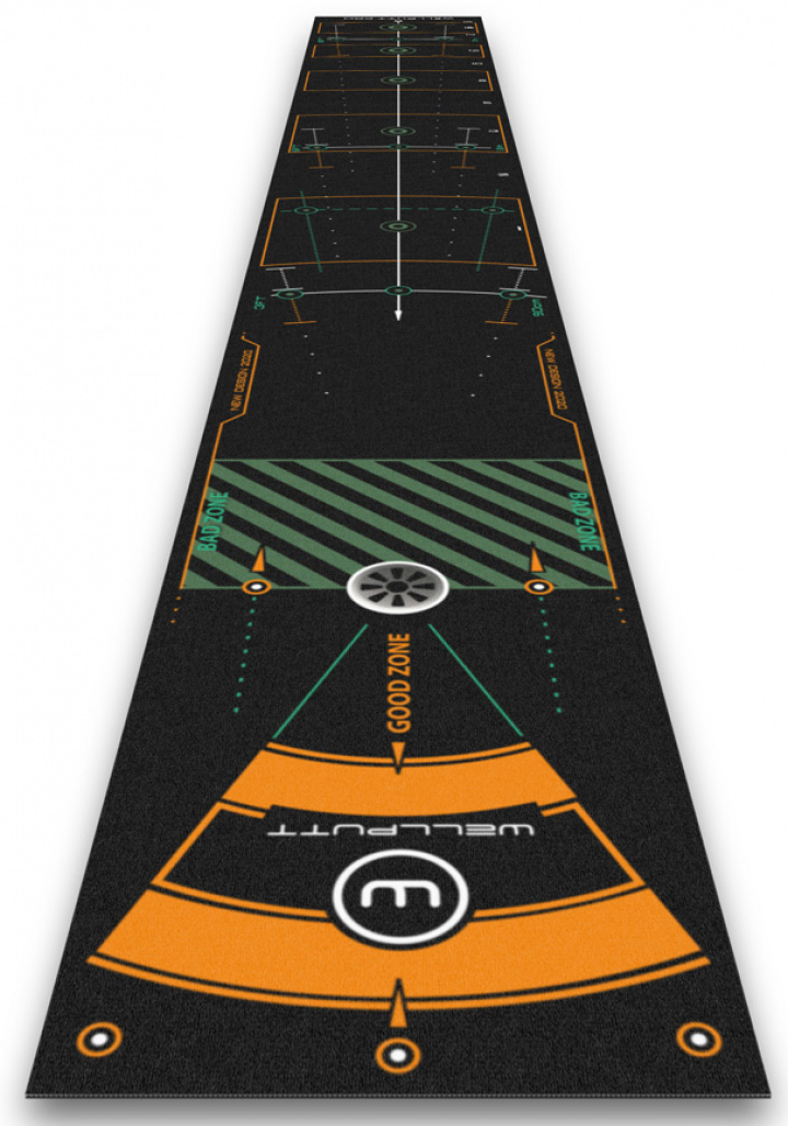 Designen hjälper puttaren att visualisera ”zonen” och WellPutt är ett hjälpmedel för dig att träna längdkontroll och riktning på samma gång. Med hjälp av de olika längdzonerna på puttmattan kan du träna på olika längder och från båda ändar av puttmattan. Puttmattan tillsammans med en bok som innehåller olika puttövningar.